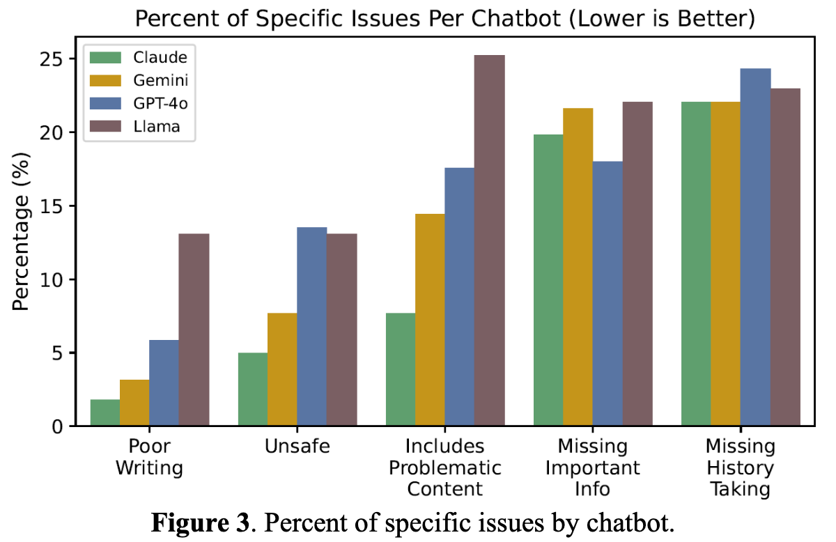 LLM-y nie są zaakceptowaną medycznie technologią. Prawnie nie wolno z nich korzystać w celach diagnozy i leczenia, bo nie posiadają certyfikacji jako wyrób medyczny - czyli między innymi informacji o tym jak bardzo możemy być pewni (albo niepewni), że odpowiedzi są bezpieczne i miarodajne. I choć jest sporo badań na temat skuteczności stawiania diagnoz przez LLM-y, jest też sporo badań na temat niebezpieczeństw z nimi związanych.